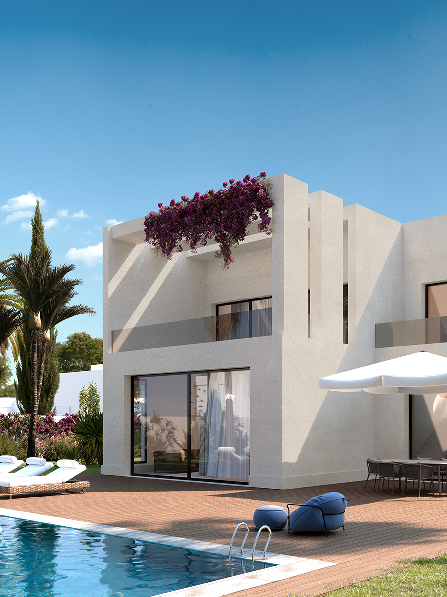 +212 666-709808On the outskirts of Marrakech, on the road to Ouarzazate, BO.TARAZA is an exceptional residence covering more than 12 hectares, offering sweeping views of the Atlas Mountains. The project comprises 42 detached two-story villas with a minimalist design, fluid layouts, and premium materials, designed to maximize light and create a genuine connection between indoors and outdoors around generous gardens. And because life is also about living together, 2,285 m² of green spaces structure the site and create places to relax and share moments together. BO.TARAZA: modern, comfortable, authentically Marrakech.